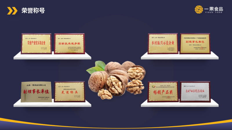 山西一果食品有限公司成立于2014年6月,占地面積260余畝,廠房面積8萬平米,常溫庫房30000平米,冷庫5800平米,原果儲存能力2萬噸以上,注冊資本2000萬元,總投資5億元,是一家靠核桃種植、加工、國內(nèi)外貿(mào)易以及食品科研開發(fā)于一體的農(nóng)業(yè)產(chǎn)業(yè)化現(xiàn)代企業(yè)。其主要業(yè)務(wù)聚焦于核桃基地的培育和核桃系列產(chǎn)品的開發(fā)、生產(chǎn)與銷售。作為呂梁市旨在擴(kuò)展核桃產(chǎn)業(yè)鏈、增強(qiáng)核桃產(chǎn)業(yè)實(shí)力的標(biāo)志性項(xiàng)目,一果食品已被認(rèn)定為山西省級重點(diǎn)項(xiàng)目,并榮獲山西省農(nóng)產(chǎn)品加工龍頭企業(yè)稱號。